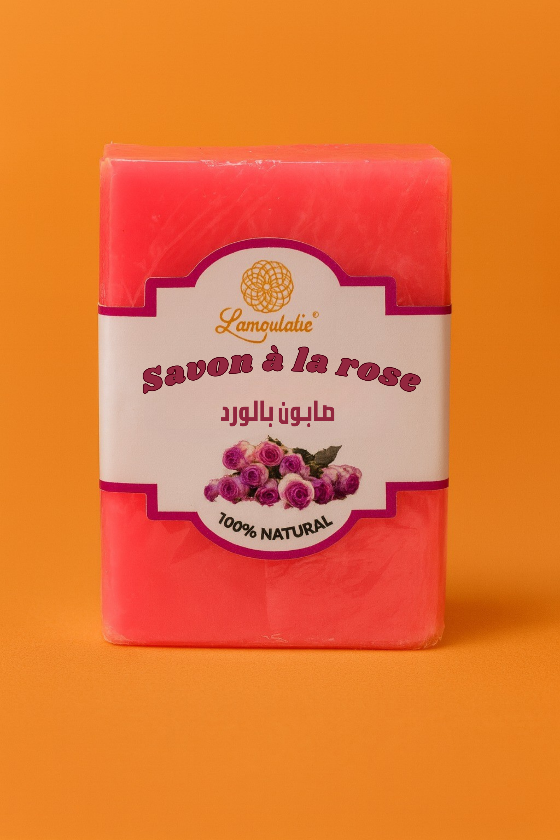 Un savon délicat à la rose de Dadès, idéal pour adoucir et parfumer subtilement la peau.